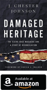 As he worked, Johnson would discover that his beloved grandfather had participated in the Massacre. The discovery shook him to his core. Determined to find some way to acknowledge and reconcile this terrible truth, Chester would develop a racial healing relationship with Sheila L. Walker, a descendant of victims of the Massacre. Sheila Walker, who wrote the Foreword to Damaged Heritage, had also been on her own journey through family history that led straight to the Elaine Race Massacre. Together, she and Chester committed themselves to a journey of racial healing and abiding friendship.