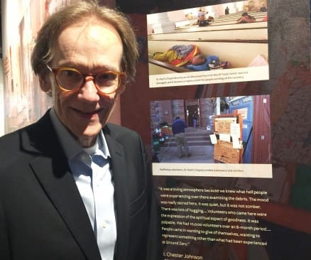 The 9/11 Tribute Museum, formerly known as the 9/11 Tribute Center, has recently opened in 2017 on Greenwich Street behind Trinity Church Wall Street, only a few, short blocks from Ground Zero. The organization began serving the public in 2006 by commemorating the stories of those who lived and experienced the tragic events of 9/11. The Museum now presents videos, artifacts and personal histories, linking visitors who want to understand more about the attacks with those who experienced them. Comments by J. Chester Johnson, who volunteered at St. Paul’s Chapel at the same time he served on the vestry (governing board) for Trinity Church Wall Street, which owns and operates the Chapel, have been made part of the exhibits at the Museum. During the cleanup at Ground Zero, St. Paul’s Chapel served as the relief center for the recovery workers. Johnson’s words describe the way that the atmosphere and volunteers at the Chapel helped to uplift the spirits of those workers and provide some temporary comforts to those who had to return from the Chapel across Church Street to the Pile at Ground Zero, only a few yards away.
